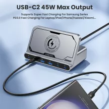 What sets this charger apart is its ability to replace multiple bulky adapters with one sleek desktop hub. Instead of plugging in five or six different chargers, you use just one power source and one organized station. The wireless pad adds extra convenience for quick phone drop-and-go charging, without any cables.