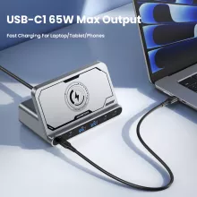 Stop juggling chargers and outlets. This high-power 160W desktop charging station is designed to handle all your devices at once, without slowing down. It features a smart mix of USB-C and USB-A ports plus a built-in wireless charging pad, so your phone, laptop, tablet, earbuds, and accessories can all charge at the same time. Fast, stable, and easy to use, it keeps your desk clean and your tech ready to go.