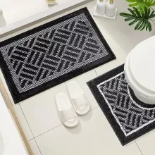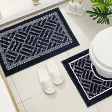 This set stands out because of its flocking material, which creates a smooth, velvety surface that feels soft underfoot but stays strong with daily use. Unlike ordinary bathroom mats, this one is made with a non-slip backing to help keep it firmly in place, reducing the risk of slipping on wet floors. The bold striped pattern adds a touch of modern style that fits perfectly in bathrooms, toilets, entryways, or even small living room areas.