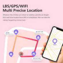 This smartwatch comes packed with essential functions every parent wants. It includes 4G network support for smooth HD video calls, voice calls, and fast WiFi connectivity. Real-time GPS, WiFi, and LBS positioning ensure accurate location tracking indoors and outdoors. A built-in camera adds fun for kids while giving parents a clear view when using remote monitoring.
