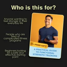 Stop wondering how to start your functional strength training journey. This guide lays it all out for you in an easy-to-follow, motivating format. With practical case studies, clear instructions, and a focus on long-term success, you have everything you need to build a foundation of strength that serves you for life.