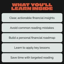 - Chapter 4: What’s Next? – Get a clear roadmap to continue progressing and turning your financial knowledge into actionable steps with a 30-day reading challenge.