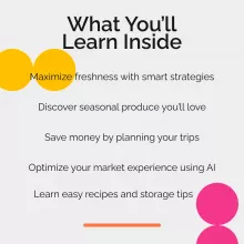 What Makes This Guide Unique? Unlike other digital resources, A Seasonal Shopper’s Guide to Farmers Markets provides practical, easy-to-follow strategies that combine real-world advice with cutting-edge technology like AI for smarter shopping. Plus, it’s not just about shopping—it’s about enjoying and storing your seasonal finds in the best way possible, making your local market trips a regular, joyful habit.