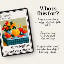 I've always been a bit intimidated by the thought of creating an autumn tablescape, but this eBook has completely changed that. The instructions are clear and easy to follow, with plenty of creative ideas that have made my fall table decorations truly stunning.