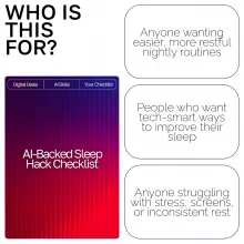 This digital checklist is perfect for anyone who struggles to fall asleep quickly, busy professionals needing a calming routine, technology lovers who want to make AI work for their wellbeing, or anyone curious about simple ai tips for falling asleep faster.