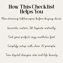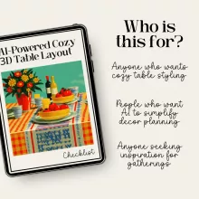 Most styling guides show you what to do—this one shows you how to design it yourself with the power of AI. Instead of copying someone else’s table setup, you’ll learn to generate layouts based on your unique style, mood, and color palette. Transform inspiration into a customized, 3D visual plan that you can replicate step-by-step in real life. Perfect for anyone who wants creative control with none of the overwhelm.
