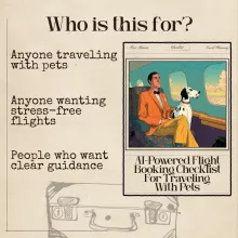This digital checklist is designed for pet parents, frequent travelers, first-time flyers with animals, and anyone who wants to use AI confidently when planning flights with pets. If you want a smoother booking experience with fewer unknowns, this guide is for you.