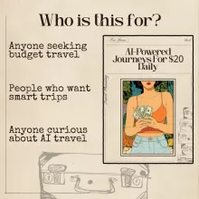 I'm a student always looking for ways to save money and still have fun traveling...this eBook was perfect! The use of AI in finding affordable flights, hotels, meals is genius 🤓 I can't wait to apply these tips in my next trip!