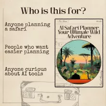 Download the AI Safari Planner: Your Ultimate Wild Adventure today and start crafting a safari itinerary that’s effortless, unforgettable, and uniquely yours. Your dream wildlife journey begins the moment you click purchase!