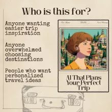 As a busy professional who loves to explore new places whenever possible, finding unique destinations can be challenging due to lack of time. But thanks to this amazing tool that harnesses the power of AI for trip ideas 💡🗺️ , I'm now able to discover places I'd never even consider before! What sets it apart is how it teaches you exactly how to interact with the AI - ensuring personalized and meaningful experiences every single time ✈️ . Not only does it help in intentional and organized planning but also provides clarity on budgeting aspects which is super helpful. Highly recommended for anyone looking forward making their next getaway exciting and effortless!