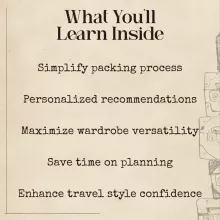- Smart and Personalized: This guide helps you create outfits based on your destination, weather, and travel style.