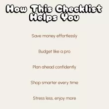 This digital checklist is perfect for expecting parents, new moms and dads, or caregivers who want to feel prepared without the financial overwhelm. It’s ideal for those who love structure and simplicity — and who value practical tools to stretch every dollar further.