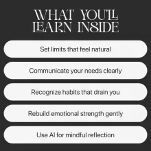 This guide is for anyone who gives too much, feels drained by others’ demands, or struggles to prioritize their own peace. Whether you’re healing from people-pleasing, learning emotional self-awareness, or simply ready to take up more space in your life, this guide offers clear, actionable steps to help you build strength without losing compassion.