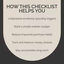 This checklist is perfect for anyone who feels stuck in a cycle of compulsive shopping, struggles with emotional spending, or wants a supportive, judgment-free tool to build healthier financial habits. Itâs equally helpful for beginners on their financial wellness journey or those seeking added accountability.