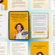 Start your journey toward a more empowered and positive mindset with the Bright Side Every Day: 365 Quotes to Power a Positive Mindset eBook. This digital download offers 365 days of positive thinking quotes, each designed to inspire, uplift, and guide you toward a brighter, more resilient outlook on life. Whether you’re looking to boost your confidence, find strength during tough times, or cultivate gratitude, this guide is your daily companion for creating a mindset of success and happiness. Discover the power of positivity and make it part of your daily routine!