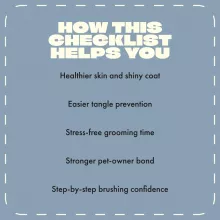 I've been struggling with my dog's grooming routine, but this checklist has made it so much easier. It’s clear and concise, plus the tips are really helpful for maintaining my dog's coat health.