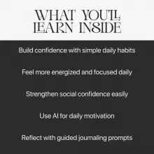 This isn't just some generic workbook, it's like having your own personal coach for building self-confidence. Love the blend of psychology-backed habits and AI tools – makes it so interactive.