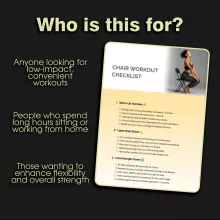 This digital guide is perfect for anyone looking to improve their fitness without needing a lot of space or equipment. Ideal for desk workers, seniors, people with limited mobility, or anyone who prefers low-impact exercises, the Chair Workout Checklist provides: