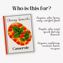 As a busy mom, I'm always on the lookout for quick and easy recipes that my family will love. This eBook has been a godsend in that regard! The Cheesy Gnocchi Casserole recipe is now a firm favorite at our dinner table. It's simple to make, yet so delicious and comforting - just what you need after a long day!