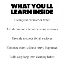 As a busy driver, finding time to clean my car's interior often seems impossible. But with this guide, it became straightforward and less time-consuming than I anticipated! It explains the basics of interior detailing in plain language - no jargon or technicalities. One thing that stood out to me was the correct order to clean your car interior; it saved me from redoing work and wasting precious minutes. The guide also pointed out common mistakes that could ruin results - something I wasn't aware of before. Plus, it provides clear guidance for fabric, leather, and plastic surfaces which is super helpful as my vehicle has all three types! In just 30 minutes following their real-world case study example, I noticed a huge difference in how my car looked and smelled without any heavy fragrances involved 😊 What’s more? There are AI prompt examples for planning product selection and maintenance routines which makes things even easier 🙌 This guide not only improved the look feel and smell of my car but also reduced stress by giving me a clear plan instead of guesswork 👍 So if you're an everyday driver like myself or someone who feels overwhelmed when searching for how to detail your car interior - this is perfect for you!