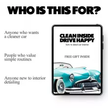 Clean Inside, Drive Happy is a digital download, so you can start immediately. If you’re ready to learn how to detail car interior the right way and enjoy every drive more, download the guide today and take the first step toward a cleaner, happier car.