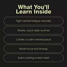 This comprehensive digital guide is packed with actionable, easy-to-follow content designed to deliver real results. You receive an instant PDF download, so you can start your journey to mental clarity within minutes.