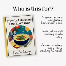 Don’t wait to enjoy rich, creamy, homemade broccoli cheddar soup. Download your copy of Comfort Broccoli Cheddar Soup Made Easy today and learn exactly how to make broccoli cheddar soup that will impress family and friends every time.