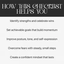 This checklist is perfect for anyone wanting to learn how to build self-confidence step by step—from students and entrepreneurs to creatives, parents, and anyone looking to feel stronger and more self-assured. It’s for the person who wants to stop doubting and start doing, building confidence that lasts far beyond a single moment.