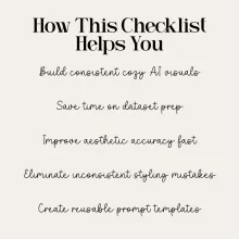Unlike generic AI prompt guides, this checklist is hyper-focused on a specific visual niche: cozy table aesthetics. It gives you a repeatable structure instead of vague inspiration. You’re not just learning prompts; you’re learning the entire process of how to train ai on your favorite cozy table aesthetics so your results stay consistent, high quality, and personal to your style.