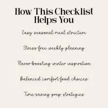 This checklist is ideal for anyone craving cozy, nourishing meals during the winter months—busy families, meal preppers, new cooks, or anyone who wants to bring more comfort, flavor, and warmth into their weekly routine.
