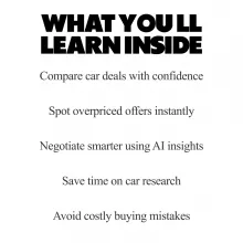 Unlike generic car buying guides, DealSense AI focuses on real AI workflows, prompt examples, and buyer scenarios you can apply immediately. It doesn’t just explain AI—it shows you how to use it effectively to uncover better deals and avoid costly mistakes.