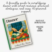 Unlike generic meal-planning printables, Dinner Without the Stress teaches the mindset, structure, and small habits that make dinner feel lighter every single day. It blends practical strategy with modern tools, including AI-based helpers you can start using immediately—making it both timeless and refreshingly current.