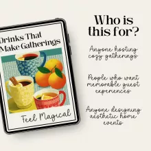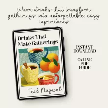 This is a digital ebook, delivered instantly after purchase. No physical shipping required. If you want a clear, creative answer to what warm drinks to offer for winter gatherings and want your events to feel warmer, richer, and more magical, this guide is made for you.