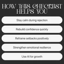 This checklist is for anyone who struggles with taking rejection personally or feels discouraged after setbacks. It is especially useful for job seekers, entrepreneurs, creatives, students, and anyone working on personal growth. If you’ve ever searched for how to face rejection with dignity because you want to stay confident, composed, and motivated even when things don’t go your way, this resource is made for you.