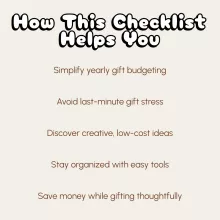 This checklist is ideal for families, parents, and anyone who loves giving but needs a little help staying organized and on budget. Whether you’re planning holiday surprises, birthday gifts, or small tokens of appreciation, this digital guide will keep your spending on track—without sacrificing thoughtfulness.
