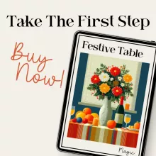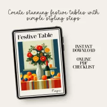 Unlike long, overwhelming decor guides, Festive Table Magic is built as a clean, action-based checklist. It gives you direct steps instead of vague inspiration – so you always know what to do next. It blends visual styling with practical hosting details like warmth, spacing, and cleanup prep, so your table is not just pretty, but also functional.