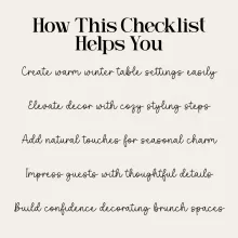 This checklist is perfect for home entertainers, holiday hosts, lifestyle bloggers, content creators, and anyone wanting to learn how to decorate a cozy table for a winter brunch with confidence and creativity.