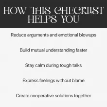 This checklist is a godsend for anyone struggling with communication issues in their relationship. It has helped us navigate through difficult conversations without sparking an argument.