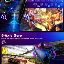 Enjoy a controller made to enhance your experience from the moment you power it on. With 17 vibrant light colors and multiple lighting effects including static, breathing and blinking modes, you can set the perfect mood for any game. Capture your best moments instantly with the built-in wireless screenshot function. The advanced 6-axis gyroscope gives you pinpoint motion control, while dual vibration motors deliver three levels of realistic feedback for deeper immersion.