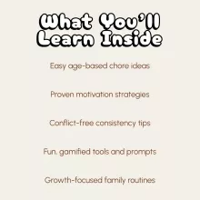 Perfect for busy parents, caregivers, teachers, and anyone raising independent, helpful children. Whether you’re introducing chores for the first time or trying to rebuild positive habits, this guide gives you the confidence and clarity to make it work — with less resistance and more smiles.
