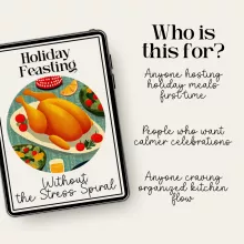 Stop dreading the kitchen chaos and start enjoying the moments that matter. Holiday Feasting Without the Stress Spiral shows you exactly how to plan a holiday feast with minimal stress using clear strategies that actually work. Download it today and turn this year’s holiday meal into a calm, confident, and memorable experience.