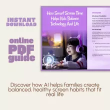 Are you tired of endless screen-time battles at home? How Smart Screen Time Helps Kids Balance Technology and Life is your essential digital parenting guide for the modern age. This easy-to-follow resource shows you exactly how to use AI to create screen time schedules that work for your family’s real life. Designed for busy parents, this downloadable guide blends practical insights with the power of artificial intelligence—helping you set boundaries, encourage digital wellness, and bring harmony back into your household.
