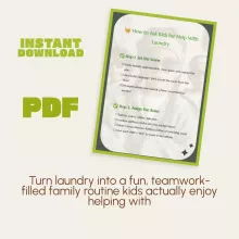 Turn laundry day into a moment of teamwork, laughter, and learning with How to Ask Kids for Help With Laundry — a digital guide designed to help parents turn this everyday task into an enjoyable routine for kids. Whether you’re teaching toddlers or empowering older kids, this printable eBook helps you make chores fun, structured, and rewarding. Perfect for busy parents who want to nurture independence and responsibility while keeping the household running smoothly.
