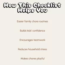 The checklist included in the book is fantastic! I've seen such improvement in my children's willingness to participate in household tasks.