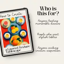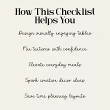 This checklist is perfect for home entertainers, creative hosts, interior styling enthusiasts, and anyone who loves making meals feel special. If you’re looking for simple, actionable guidance on how to create a layered texture tablescape, this digital download is your go-to resource.