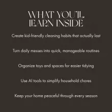 This eBook is ideal for parents, caregivers, and anyone who wants to maintain a clean, calm home while raising kids. If you’ve ever wondered how to keep your home clean with kids without constant stress, this guide was made for you.