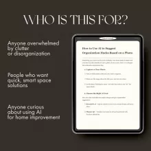 Overwhelmed by clutter or unsure where to start organizing? The How to Use AI to Suggest Organization Hacks Based on a Photo digital checklist is your ultimate guide to using smart technology for a cleaner, more functional space. Whether it’s your home, closet, or office, this practical download shows you step-by-step how to capture, upload, and analyze photos of your space—so AI can instantly suggest organization hacks tailored to you. Simple, quick, and surprisingly fun, this checklist turns chaos into calm with just one photo.