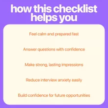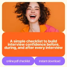 Unlike long eBooks or overwhelming guides, this checklist is actionable, encouraging, and easy to use. It focuses on confidence as a skill you can practice—not something you’re born with. You can use it again and again for every interview or opportunity that comes your way.