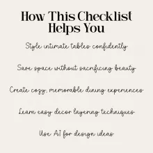 Ready to transform your small dining space into something truly special? Download this checklist today and start creating beautiful intimate dinner table decor for small spaces that feels effortless, stylish, and perfectly suited to your home. Add it to your cart now and enjoy instant access to your new decor tool.