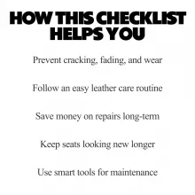 This checklist is ideal for car owners, rideshare drivers, auto detail enthusiasts, and anyone who wants reliable how to protect leather seats tips without digging through endless articles or videos. It’s especially helpful if you prefer simple instructions you can follow on a schedule.